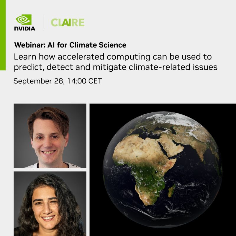 Dive deeper into AI for climate science at the upcoming NVIDIA webinar, presented in collaboration with CLAIRE (Confederation of Laboratories for Artificial Intelligence Research in Europe).