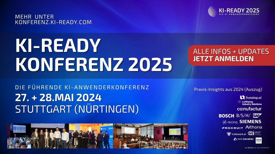 Entdecken Sie das Potenzial von KI für Ihr Unternehmen. Die KI-READY Konferenz 2025 ist der zentrale Treffpunkt für Unternehmensentscheider aus der Industrie. Hier erleben Sie, wie KI-Technologien die Wirtschaft und unsere Arbeitsweisen transformieren – ähnlich revolutionär wie einst die Dampfmaschine oder das Internet. Wir stehen am Anfang einer Entwicklung, deren Tragweite wir erst erahnen. Nutzen Sie die Chance, sich durch praxisnahe Einblicke und den Austausch mit Experten auf die Zukunft vorzubereiten. Seien Sie dabei, um die Weichen für morgen zu stellen.